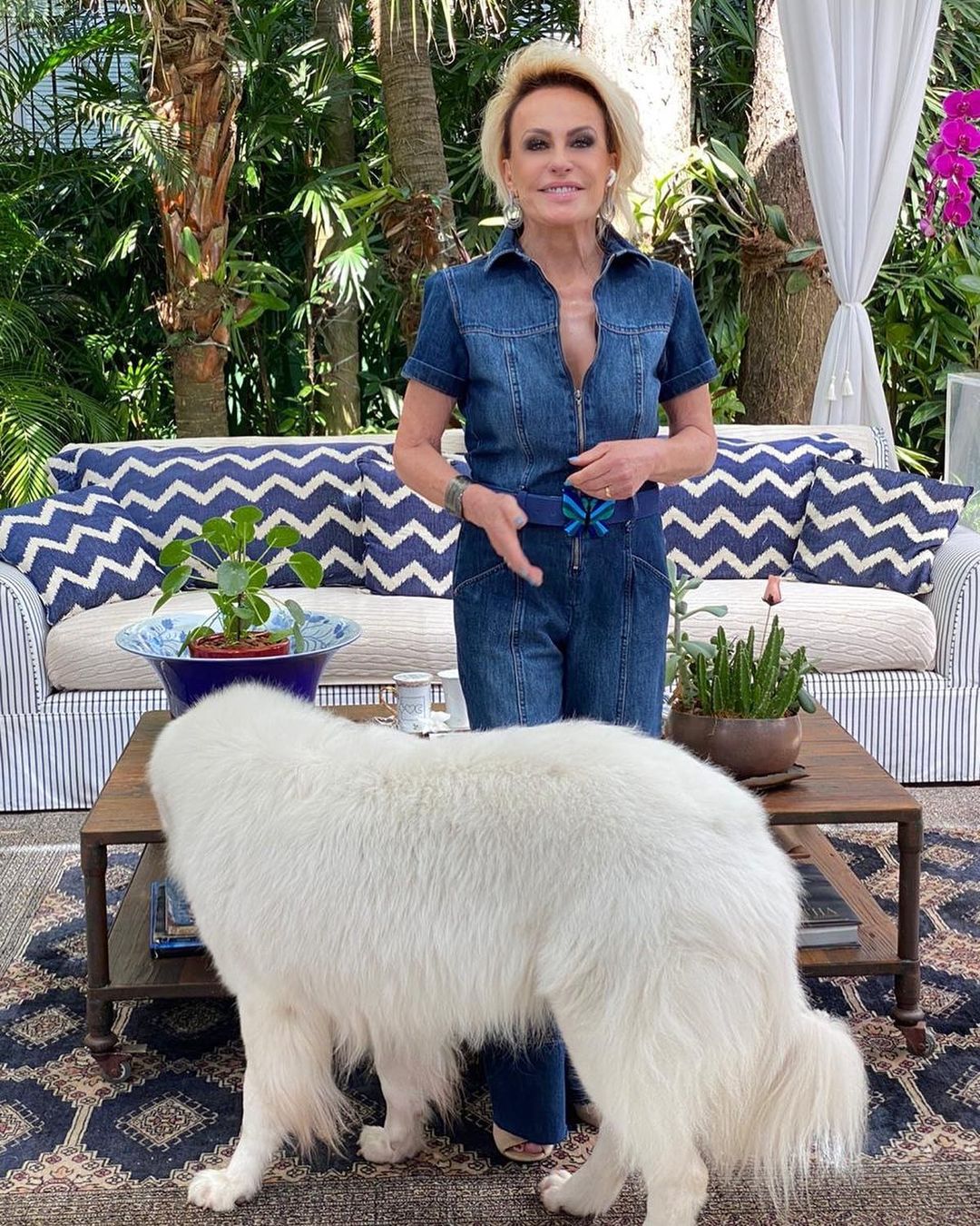 “Obrigada pelos elogios ao meu vestido. Mas é um macacão rsrsrs! P.S. A Pepa chegou bem na hora da foto e não tive coragem de tirar…”, brincou na legenda da foto em seu Instagram.