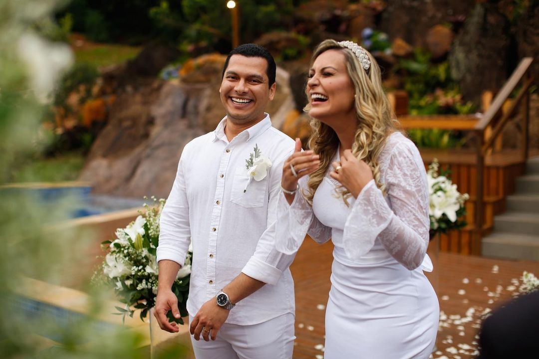 Andressa Urach assumiu o namoro com Thiago Lopes recentemente e já levou o relacionamento para o altar. A modelo se casou em uma cerimônia intima, nessa segunda-feira (21). O casório aconteceu ao ar livre em uma pousada em Para Grande, cidade de Santa Catarina.