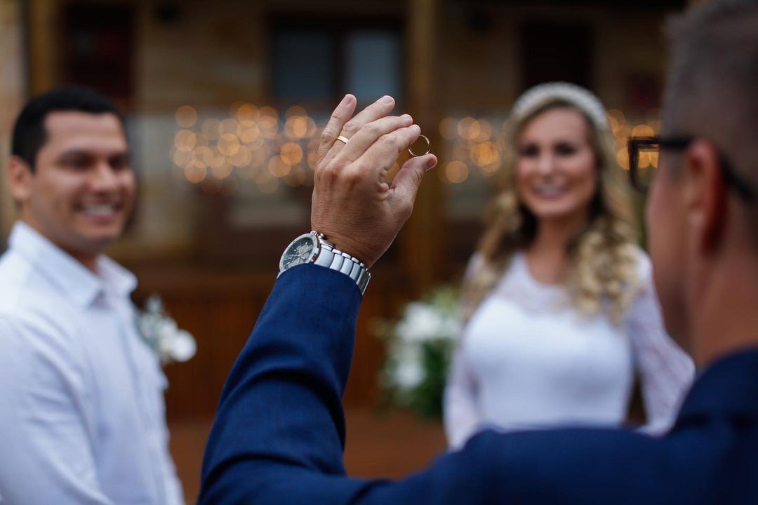 O evento aconteceu sem convidados, apenas com a presença dos noivos, do cerimonialista e dos profissionais envolvidos, como fotógrafos, cabeleireiros, maquiadores e a equipe que registrou tudo para as redes sociais.