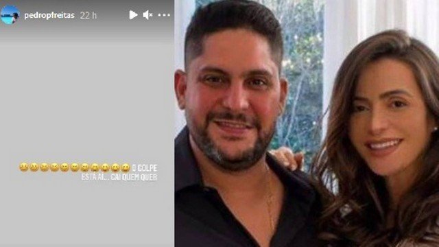 O imbróglio familiar na vida de Jorge, da dupla com Mateus, parece não ter fim tão cedo. O cantor se casou numa cerimônia íntima com Rachel Boscatti, que vem a ser ex-mulher de seu ex-cunhado, Pedro Freitas, irmão de Ina Freitas, que foi casada por anos com o sertanejo. O assunto rende nas rodas de Goiânia e pelas redes sociais. Pedro, ao ver a foto divulgada dos noivos, não se aguentou e publicou em seus stories o que parece uma indireta: “O golpe está aí, cai quem quer”, escreveu ele, se utilizando do hit de mesmo nome, cantada por Mateusinho e Menor Nico.