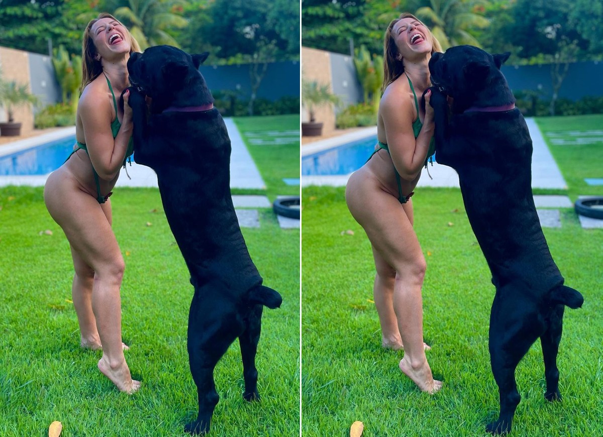 Paolla Oliveira arrumou um parceiro de dança inusitado: Marley, seu cão da raça Cane Corso. A atriz de 39 anos postou uma foto ao lado do simpático doguinho em seu Instagram, nesta terça-feira (8), na qual aparece de biquíni brincando com o animal no gramado de casa.