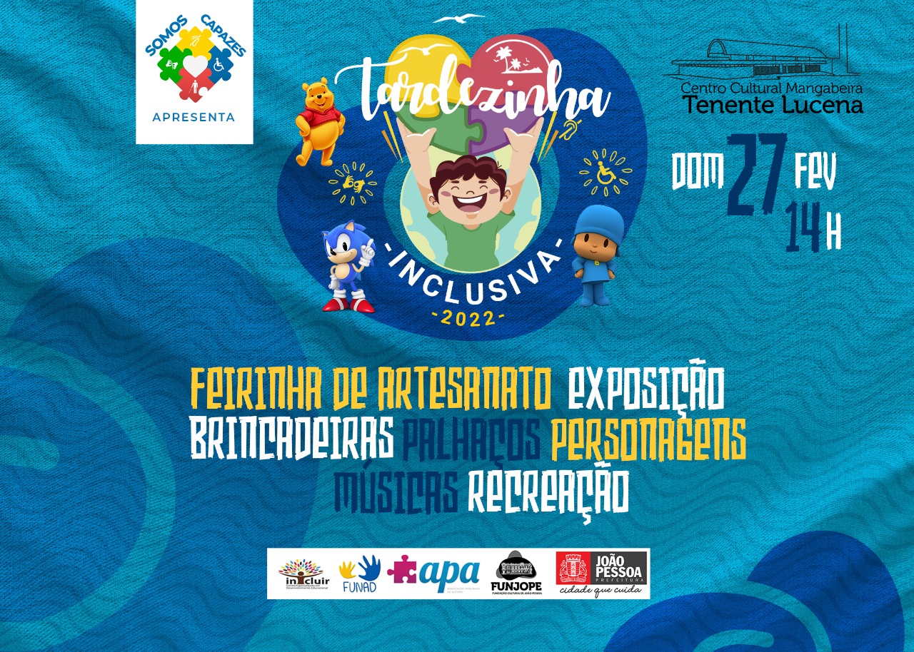 A Prefeitura de João Pessoa, por meio de sua Fundação Cultural (Funjope), retoma, no próximo domingo (27), as atividades do projeto ‘Somos Capazes – Inclusão pela Arte’, com a ‘Tardezinha Inclusiva’, voltada para crianças que têm alguma deficiência física ou cognitiva. O trabalho acontece no Centro Cultural Mangabeira, das 16h às 18h, e visa promover a inclusão, contando com a parceria da Associação Paraibana de Pais Autistas (APA), ONG Incluir e Fundação de Apoio à Pessoa com Deficiência (Funad).