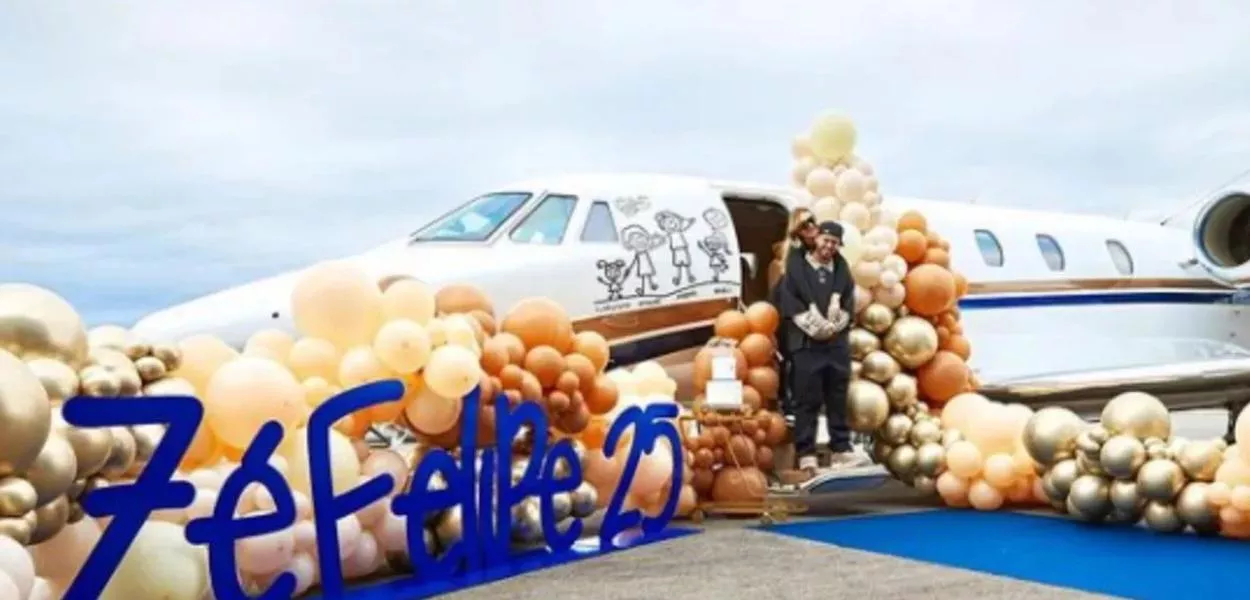 O cantor de sertanejo Zé Felipe ganhou um avião de presente de aniversário da sua esposa, a empresária e influencer Virginia Fonseca. O sertanejo comemora 25 anos na sexta-feira (21).