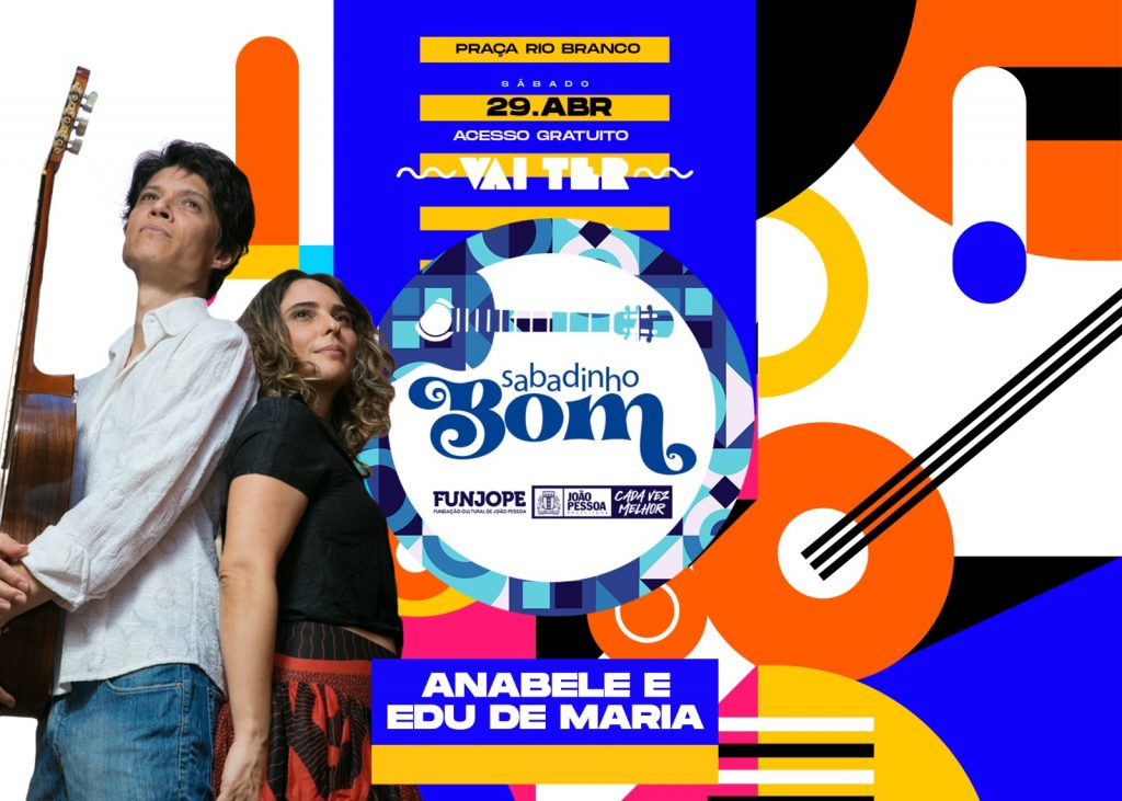 A edição do Sabadinho Bom deste final de semana terá convidados: a dupla Anabela e Edu de Maria, de Campinas (SP). Ela, na voz e percussão, e ele, com voz e violão. Somados a músicos de João Pessoa, vão tocar muito choro e samba. O evento, realizado pela Prefeitura de João Pessoa, por meio da sua Fundação Cultural (Funjope), se consolidou como um grande encontro semanal dos amantes do choro, e acontece na Praça Rio Branco, Centro da cidade, a partir do meio-dia.