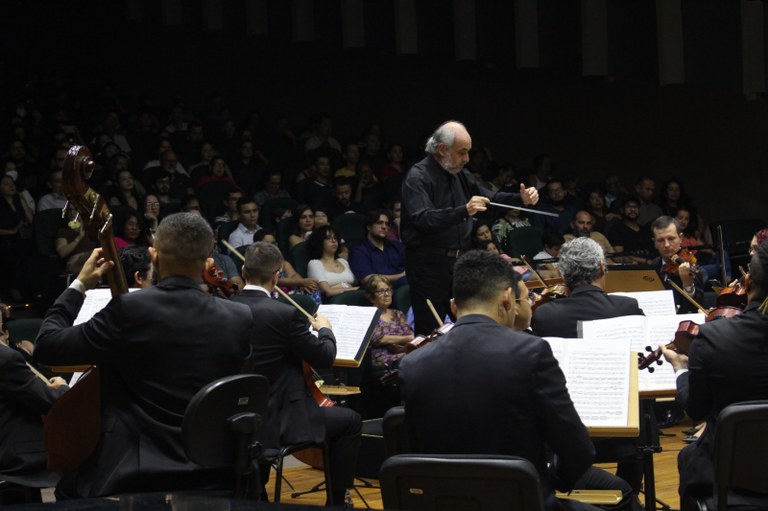 Sobre “Terno de Pifes”, de Clóvis Pereira, o maestro destacou a homenagem à cultura popular nordestina. “É uma obra no estilo armorial, que originalmente foi escrita só para duas flautas e percussão. Eu mesmo participei da gravação muitos anos atrás como instrumentista. E agora o maestro Clóvis fez uma adaptação com as cordas, também mantendo sempre as duas flautas e a percussão, que permite executar a obra no repertório sinfônico, digamos. Essa é nossa homenagem ao São João que está chegando aí”, afirmou.