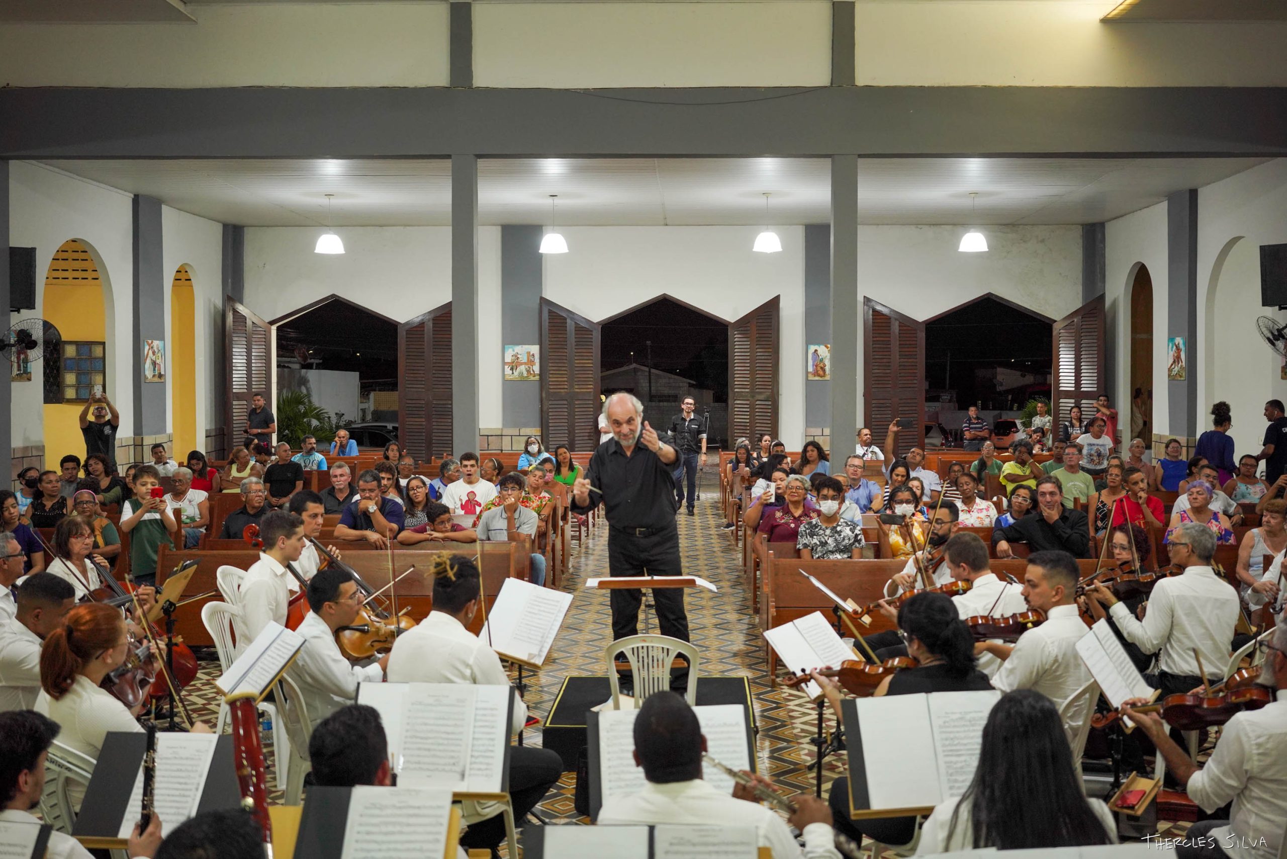 Ele explicou que os concertos nas igrejas têm um formato predeterminado de dez músicas passando por diferentes estilos. “As primeiras músicas utilizando só o naipe das cordas, músicas de diferentes épocas, de maneira que seria como uma espécie de uma viagem musical no tempo e em diferentes lugares. Tem também músicas nordestinas no estilo armorial, músicas de filmes e músicas sinfônicas de caráter sinfônico com orquestra completa. As últimas duas músicas sempre fazemos repertório brasileiro, que deixa o público e os músicos bem animados”.