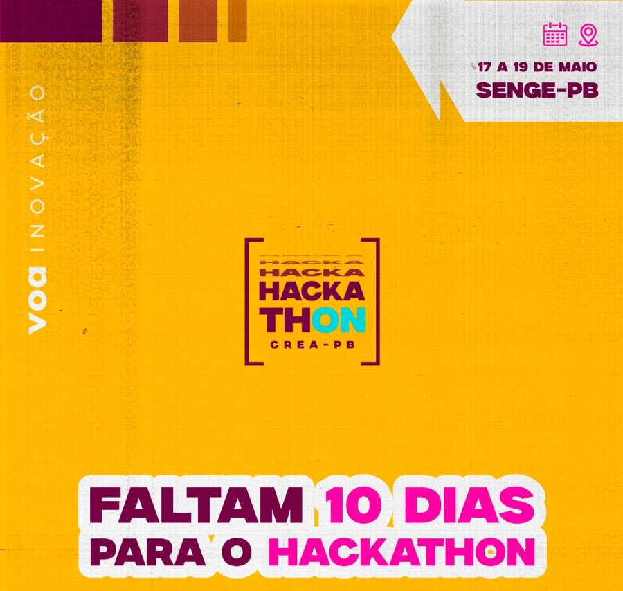 Estamos a apenas 10 dias do aguardado Hackathon promovido pelo Conselho Regional de Engenharia e Agronomia da Paraíba (Crea-PB). O evento, que acontecerá nos dias 17, 18 e 19 de maio no auditório do Sindicato dos Engenheiros (Senge JP), promete ser um marco para a comunidade de profissionais da área.