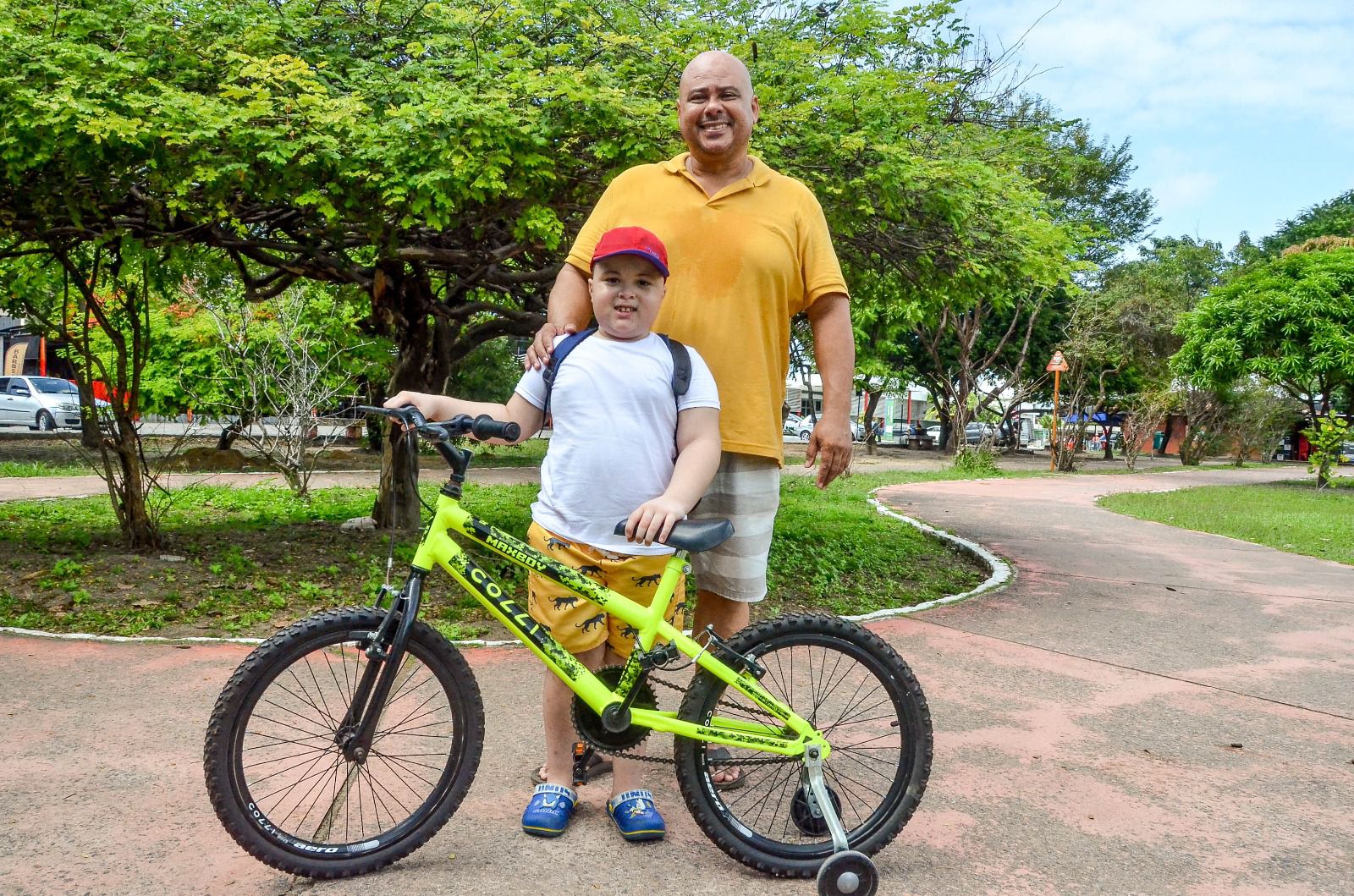 Heitor Máximo de Oliveira é um garoto encantador de 7 anos. Nas férias, tem frequentado sempre a Praça da Paz, no bairro dos Bancários, na companhia do pai, João Oliveira. “A gente vem sempre aqui para andar de bicicleta, de skate, malhar e jogar bola”, conta. Heitor fala que quando anda de bicicleta gosta da natureza e de sentir o vento na pele.