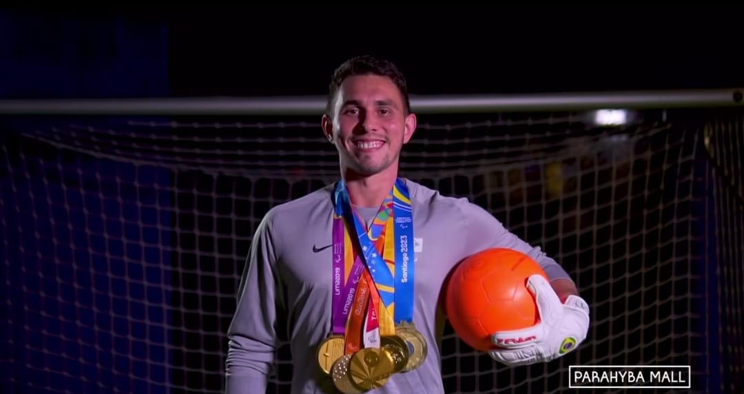 O goleiro Luan Lacerda, que está se preparando para representar o Brasil nas Paralimpíadas de Paris 2024, é um dos protagonistas da campanha “Meu Pai é Ouro”, em colaboração com o Parahyba Mall. Natural de João Pessoa, Luan é uma figura emblemática, tanto para sua cidade quanto para o país, desempenhando um papel importante como o único jogador sem deficiência na seleção brasileira de futebol de cegos, e auxiliando seus colegas em campo.