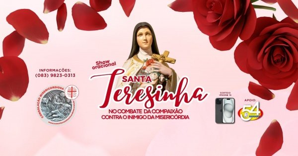O “Show Oracional de Cura Interior com Santa Teresinha” será realizado na terça-feira (1), no Intermares Hall, em Cabedelo. O formato do evento é inédito e proporcionará uma experiência singular, marcada pelo poder da intercessão da “Pequena Flor”.