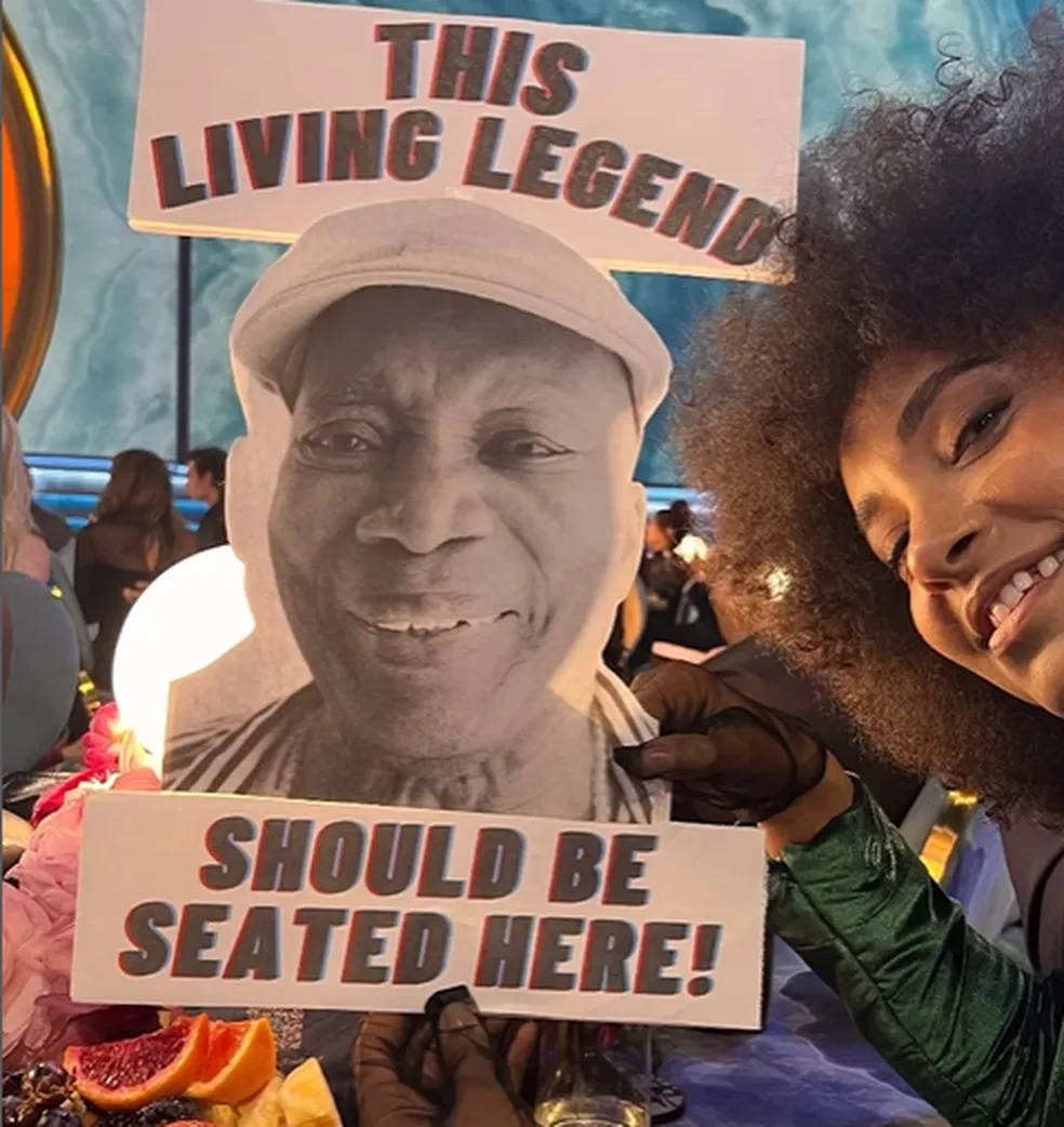 “Então, foi recusado a Milton um lugar nas mesas para a cerimônia deste ano. Isso não me agradou. Não estou falando de uma vitória no Grammy… estamos comemorando a gloriosa vitória de Samara Joy, estou falando de uma cadeira física, aqui nesta mesa em que estou sentada. Estou brava por essa lenda viva não ter sido considerada importante o suficiente para sentar entre as pessoas da lista A. Como as mesas no andar principal estão organizadas, então tive que trazê-lo comigo. Grite se você nos vir na TV”, disse a cantora.