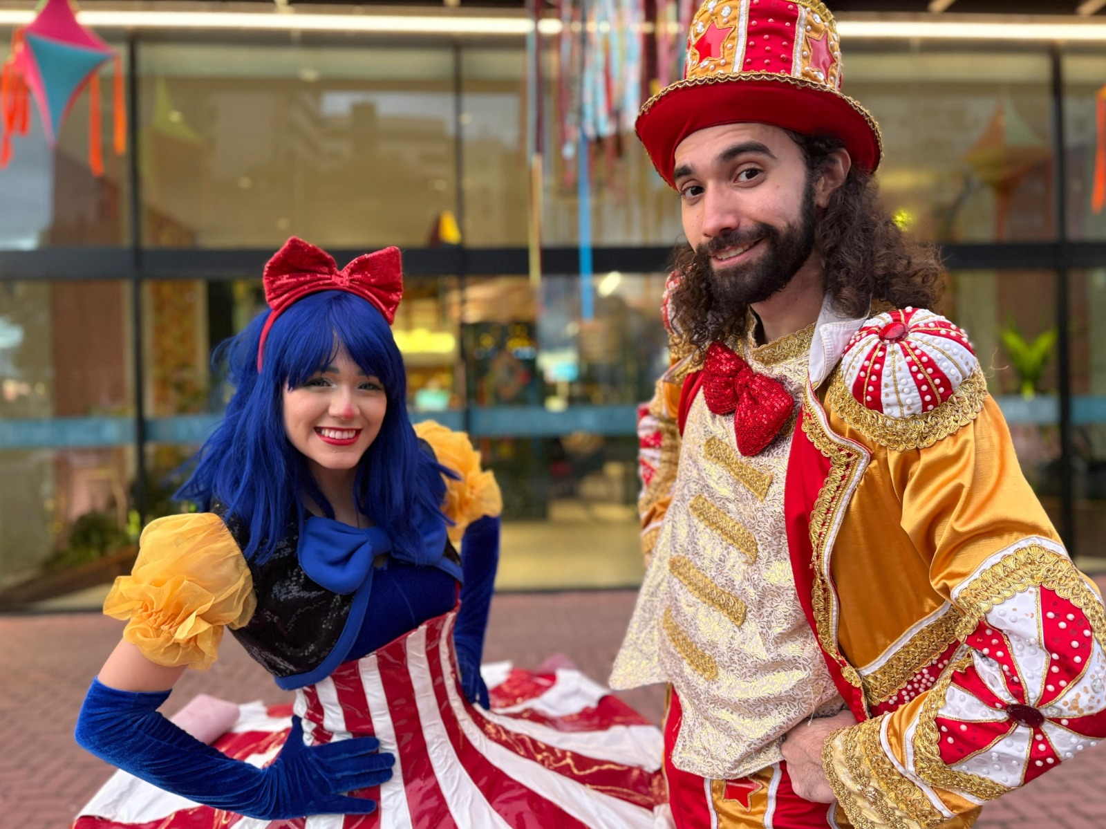 casal de artistas em evento de programação de férias