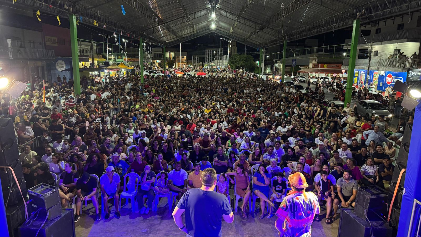Mução, um dos personagens mais populares do humor nordestino, interpretado há mais de 28 anos pelo radialista potiguar Rodrigo Vieira Emerenciano, trouxe para o público suas histórias irreverentes, bordões e o carisma que o tornaram conhecido nacionalmente. O espetáculo também contou com a irreverência de José Fabiano, humorista potiguar que soma mais de 780 mil seguidores no Instagram, e do paraibano Renan da Resenha, figura já consagrada no humor da região.