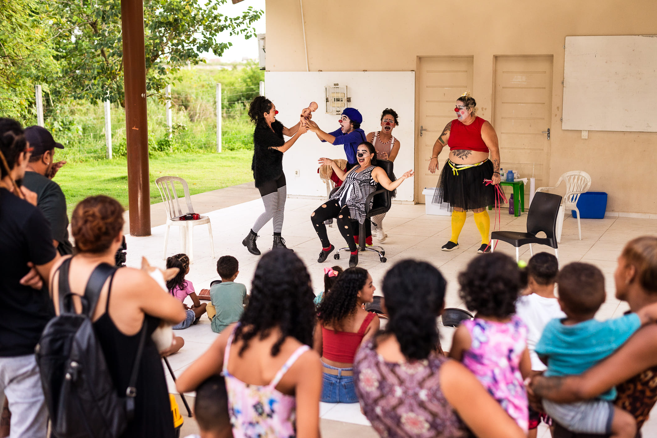 Com direção de Nyka Barros, o elenco é formado por Irla Medeiros (Cacatua), Gigliola Melo (Graúda), Rayssa Medeiros (Biscolacha) e Angélica Lemos (Lêmosquite), quatro palhaças que exploram o riso como ferramenta de empatia e questionamento. A dramaturgia revela a força das mulheres na palhaçaria contemporânea. A iluminação é de Marinalva Rodrigues, os figurinos são assinados por Tainá Macedo e o cenário e adereços por Tina Medeiros.