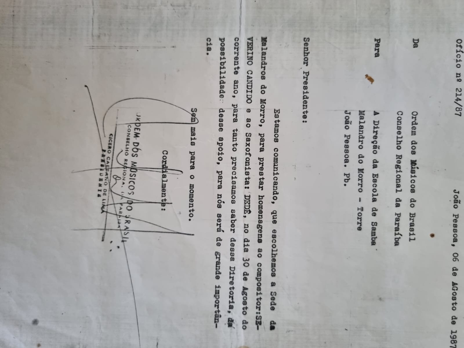 A história não falha. É assim que se deduz de documento especial revelado e obtido pela reportagem do Portal WSCOM comprovando detalhes de como o carnavalesco Severino Cândido, pai do presidente da Liga Carnavalesca de João Pessoa, Pedro Cândido, gerou as condições e fundou a Escola de Samba “Malandros do Morro”.