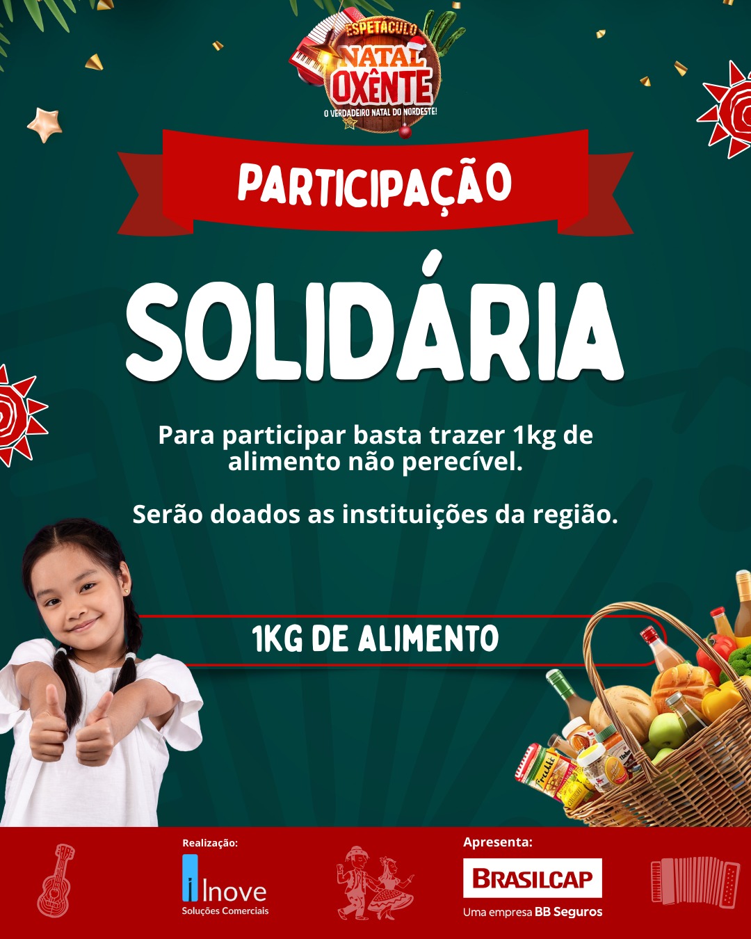 O “Natal Oxente” é uma realização da Inove Eventos com o patrocínio do Brasil Cap e conta com o apoio de parceiros locais.