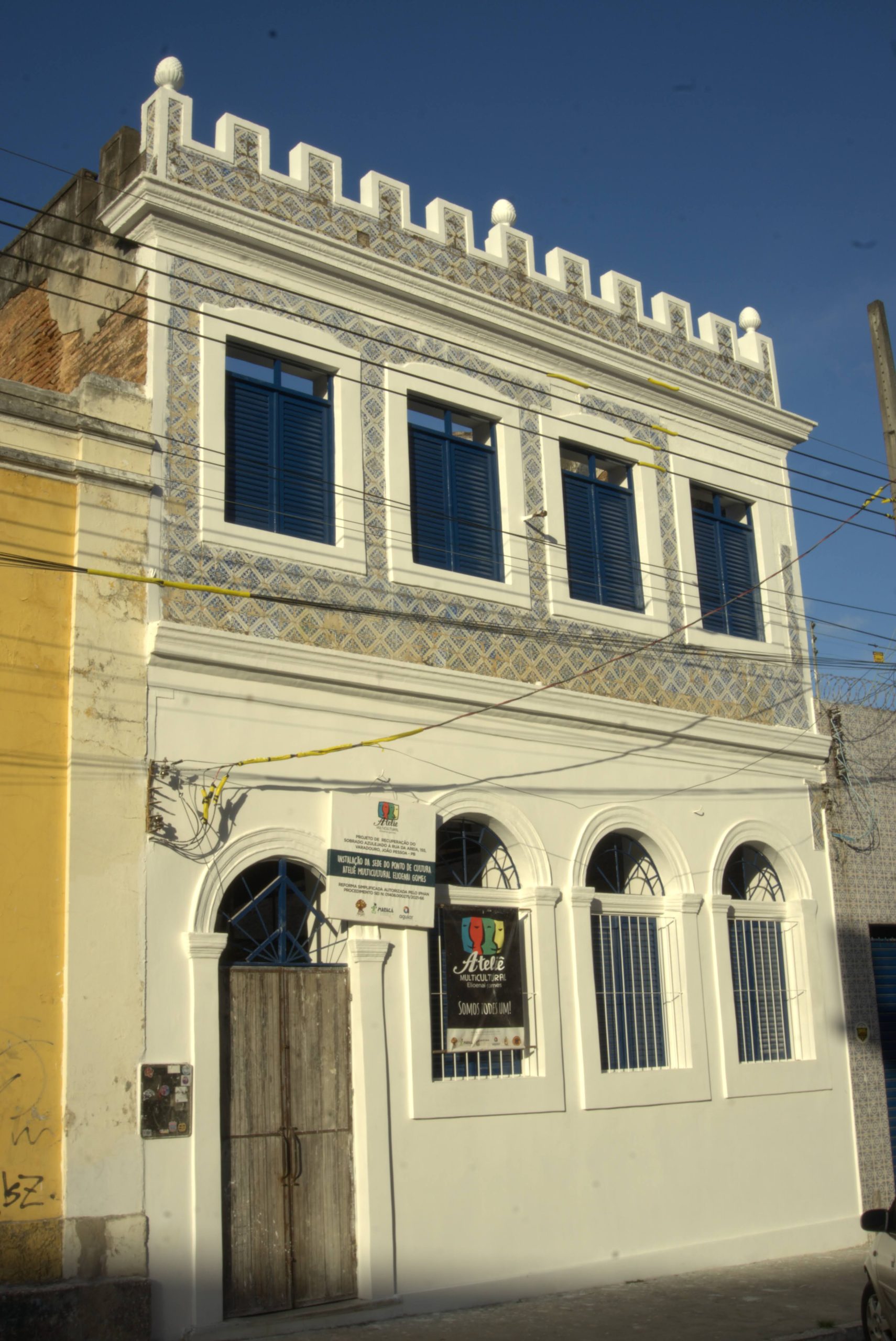 Ateliê Multicultural- Desde sua instalação no bairro do Varadouro, o Ateliê Elioenai Gomes, carinhosamente conhecido como um “quilombo urbano”, é reconhecido como um espaço de referência cultural desde 2004, fomenta práticas artísticas e educativas utilizando a arte como ferramenta de transformação social, educação e humanização e promove o resgate da identidade afro-indígena paraibana, contribuindo para a diversidade cultural e o fortalecimento da economia criativa no Centro Histórico de João Pessoa. A recuperação do Sobrado Azulejado busca consolidar este legado cultural, ao mesmo tempo, em que propõe um modelo sustentável e participativo de gestão de bens culturais.