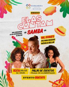 Na próxima terça-feira (6), o projeto “Elas Cantam” celebra a força feminina com uma roda de samba protagonizada por artistas paraibanas. O evento gratuito acontece às 19h30 na Praça de Alimentação do Mangabeira Shopping, integrando a programação especial do Dia Internacional da Mulher.