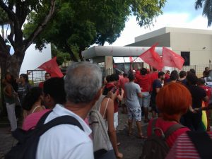 Centenas de manifestantes em protesto contra a prisão do ex-presidente Lula acabaram ato público, no início da noite desta sexta-feira, defronte ao prédio da TV Cabo Branco, em Tambiá.