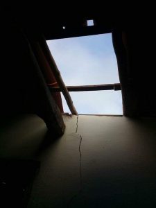De acordo com Mirian, os bandidos serraram caibros e ripas do telhado, por onde entraram e levaram todos os eletrodomésticos, mantimentos, carnes e alguns frangos de capoeira do quintal.