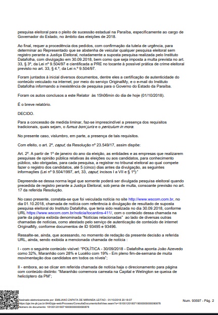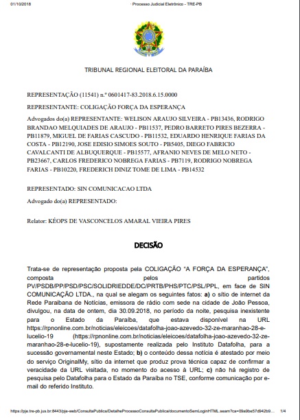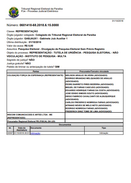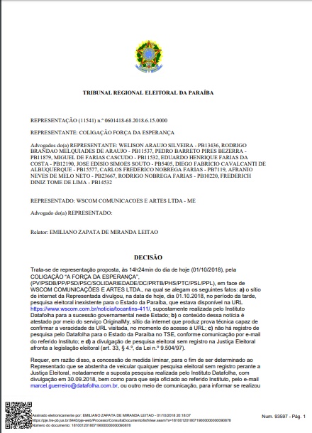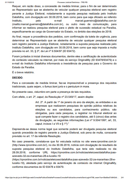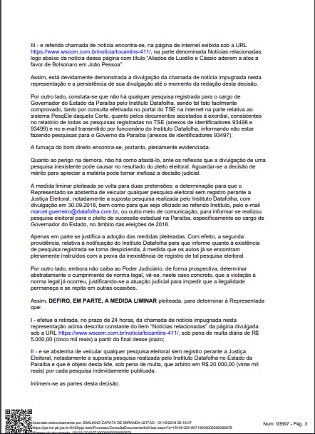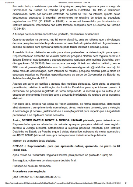 O TRE determinou que alguns portais que utilizaram como fonte uma suposta pesquisa do DATAFOLHA retirem do ar a informação. Um dos portais notificados para fazer a retificação foi o RPN ONLINE cujo domínio foi registrado pela Sin Comunicação que é a agência de publicidade responsável pelo site.