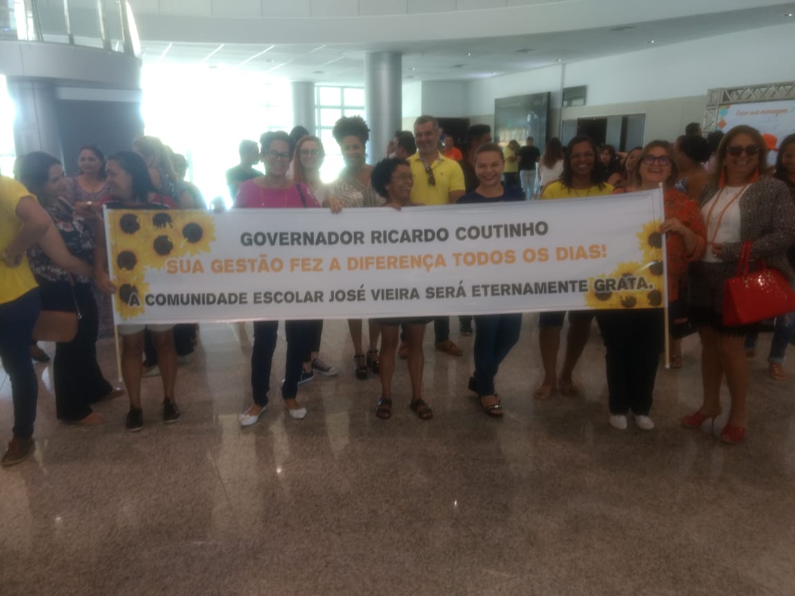 Durante o evento e lançamento do livro “Paraíba Gestão Pública 2011-2018 – Oito anos de Legado”, no Teatro Pedra do Reino, realizado na manhã desta quarta-feira (19), no Centro de Convenções de João Pessoa, diversos movimentos sociais, além de servidores e alunos da rede estadual de ensino, se reuniram para homenagear o governador Ricardo Coutinho (PSB) em um dos seus últimos atos antes da passagem de bastão para o governador eleito, João Azevêdo (PSB), no dia 1° de janeiro de 2019.
