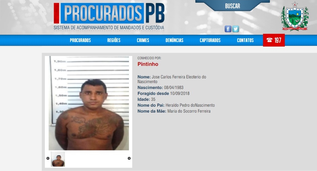Um fugitivo da Penitenciária de Segurança Máxima Doutor Romeu Gonçalves de Abrantes – PB1 foi recapturado nesta terça-feira (22), na cidade de Areia, no Brejo da Paraíba. José Carlos Ferreira Eleoterio do Nascimento foi preso após uma denúncia anônima.