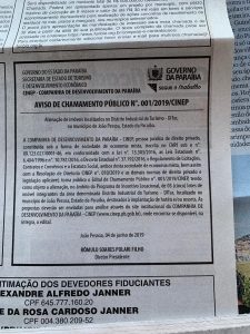 O governo do Estado, por meio da sua Secretária de Comunicação (Secom-PB), propôs um fato incomum na agenda da Paraíba ao inserir na primeira página dos principais jornais nacionais, a exemplo do jornal O Estado de S. Paulo, o Edital com Chamamento Público – 001/2019/CINEP – convidando empresários a participarem do empreendimento no Polo Turístico do Cabo Branco.