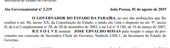 Nonato ocupava a função de secretário Chefe de Governo, na atual gestão estadual. Em sua substituição, o governador João Azevêdo nomeou Edvaldo Rosas, dirigente do PSB, que respondia por cargo em comissão de Assessor Técnico Especializado do Governo.