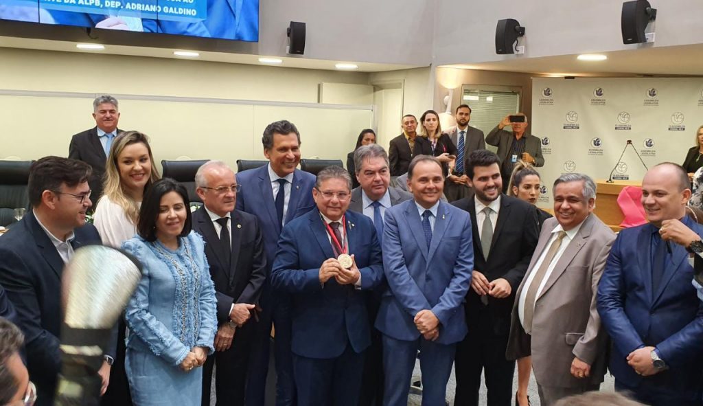 O presidente da Assembleia Legislativa da Paraíba (ALPB), Adriano Galdino, recebeu na tarde desta segunda-feira (21) o título de cidadão pessoense e a medalha Epitácio Pessoa, durante sessão solene realiza em conjunto pela ALPB e a Câmara Municipal de João Pessoa (CMJP), no plenário José Mariz.