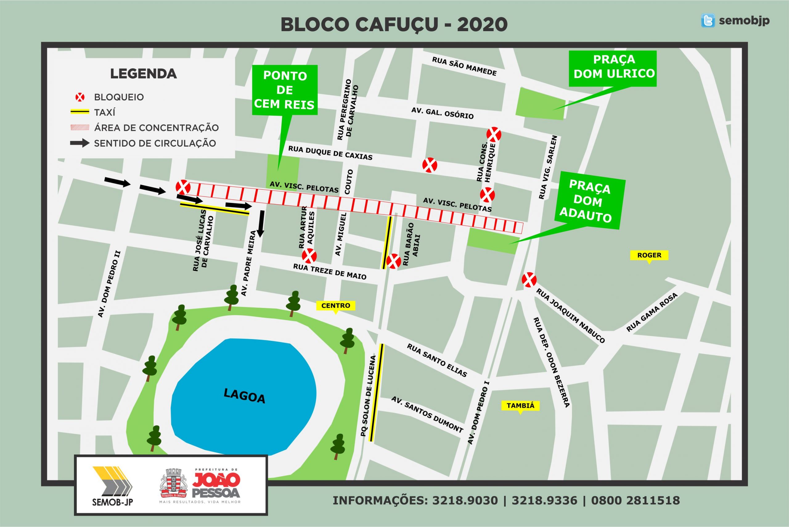 A Superintendência Executiva de Mobilidade Urbana (Semob-JP) vai modificar o trânsito no Centro e reforçar o transporte coletivo para o desfile do bloco Cafuçu nesta sexta-feira (21). O objetivo é garantir a fluidez do trânsito e a segurança dos pedestres durante a organização do evento e passagem dos foliões.