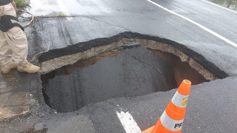 De acordo com a PRF, o Departamento Nacional de Infraestrutura de Transporte (DNIT) já foi acionado para realizar o reparo no trecho.