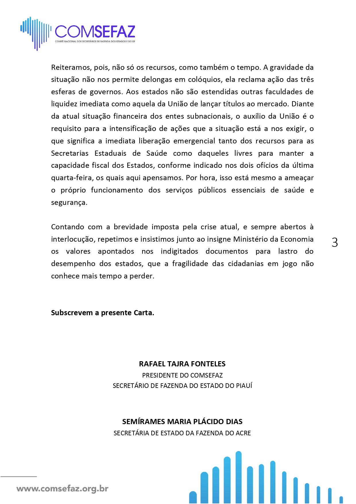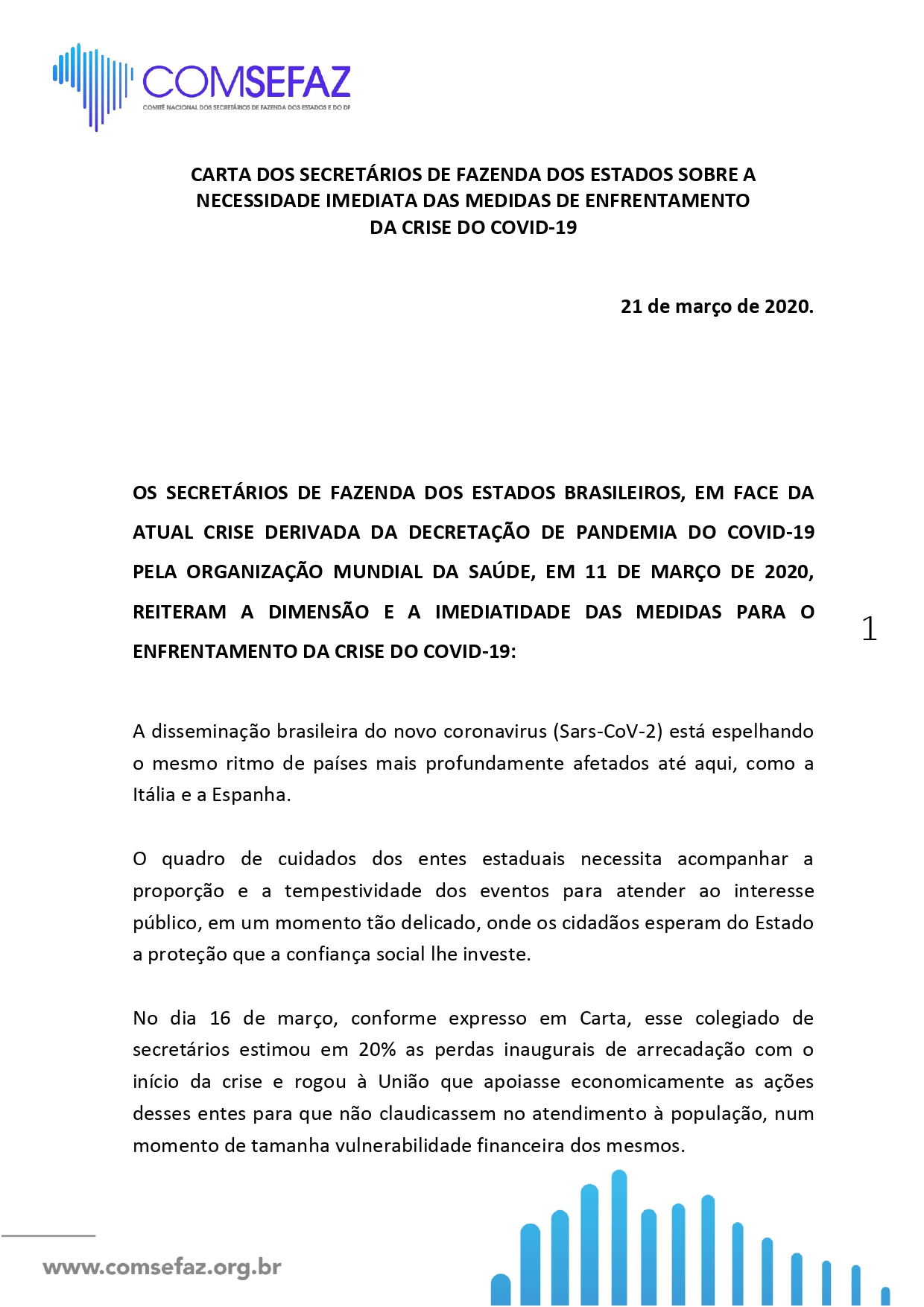 “Diante da atual situação financeira dos entes subnacionais, o auxílio da União é o requisito para a intensificação de ações que a situação está a nos exigir, o que significa a imediata liberação emergencial tanto dos recursos para as Secretarias Estaduais de Saúde como daqueles livres para manter a capacidade fiscal dos Estados, conforme indicado nos dois ofícios da última quarta-feira, os quais aqui apensamos. Por hora, isso está mesmo a ameaçar o próprio funcionamento dos serviços públicos essenciais de saúde e segurança”, diz trecho da nota que antes lembra os investimentos feitos por outros países para combater a pandemia.