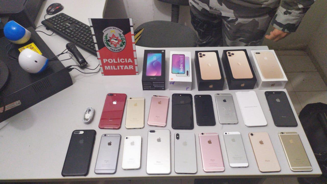 A Polícia Militar recuperou, nessa terça-feira (31), 15 aparelhos celular roubados, prendeu dois adultos e apreendeu dois adolescentes suspeitos do assalto e de receptar a mercadoria. O crime aconteceu no município de Sousa, Sertão paraibano.