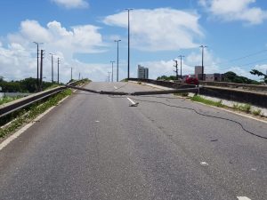 Na ocasião, o condutor trafegava no sentido Cabedelo/ João Pessoa, bateu o carro em um poste e em seguida caiu de um viaduto. O carro ficou destruído com o impacto.