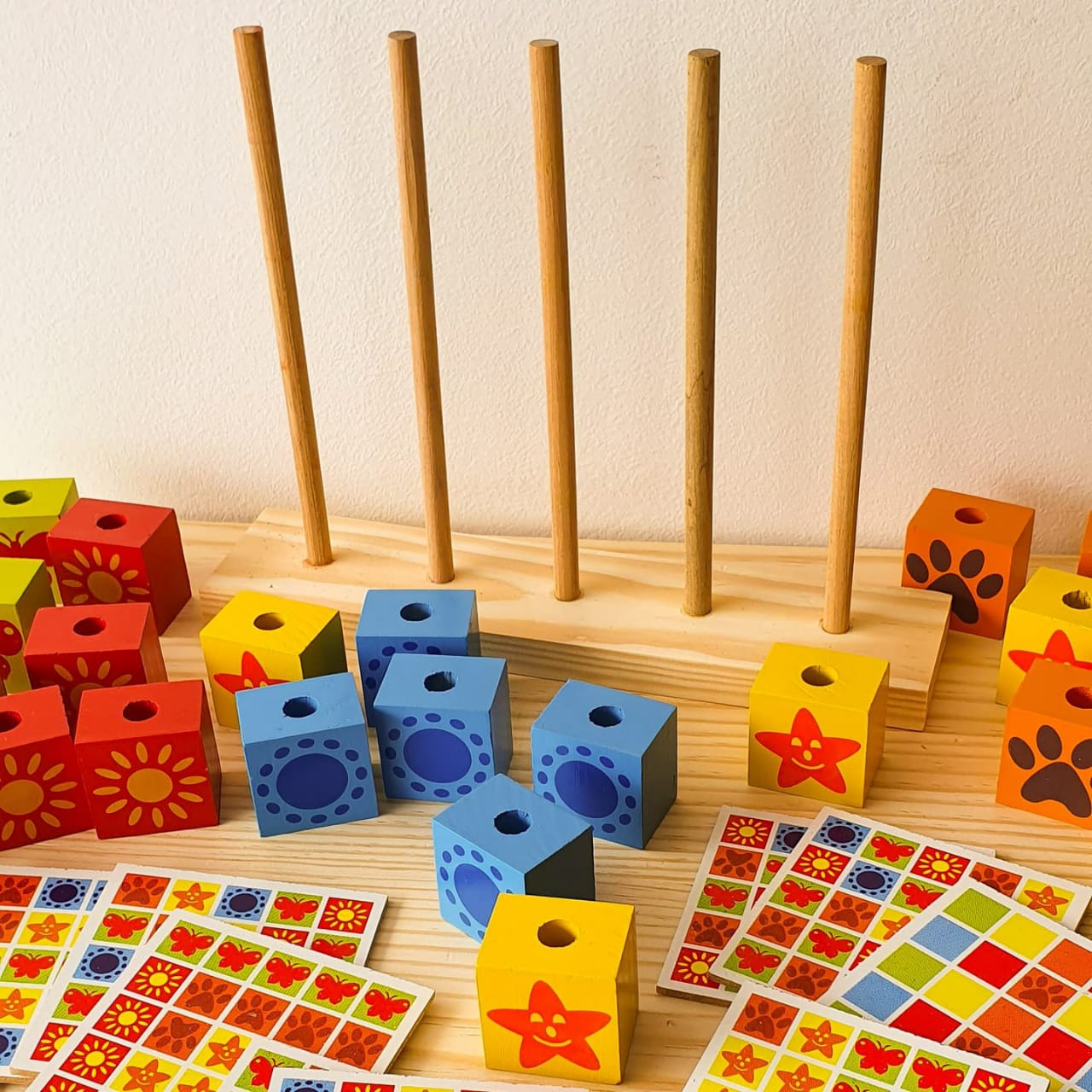 Uma das opções é o ” CUBOS SERIADOS”, um brinquedo maravilhoso que trabalha a combinação, ilustração, coordenação motora, atenção, concentração, raciocínio e memorização.