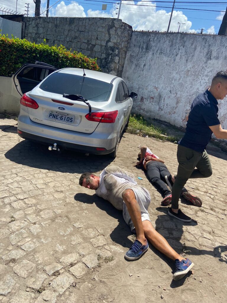 A Polícia Militar prendeu no início da tarde desta terça-feira (8) dois homens suspeitos de assaltar uma joalheria do Manaíra Shopping, em João Pessoa. Outros dois suspeitos fugiram durante uma troca de tiros com a polícia. Um dos suspeitos foi atingido. Uma sacola com joias e uma arma foram apreendidos.