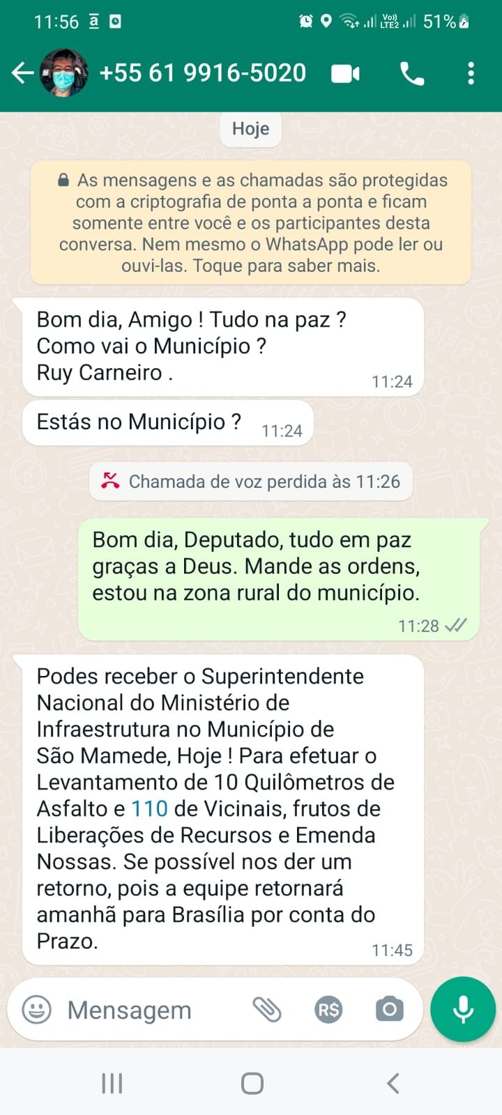 Os prefeitos, vereadores, secretários da região devem ficar atentos a contatos feitos pelo número (61)9916-5020. O contato pode estar sendo feito por criminosos na tentativa de aplicar golpes. Eles se aproveitam do período de carnaval para tentar enganar gestores, como promessas de liberação de recursos ou materiais para os municípios. golpe virtual. Não é a primeira vez que essa tentativa de golpe acontece utilizando nome do político.