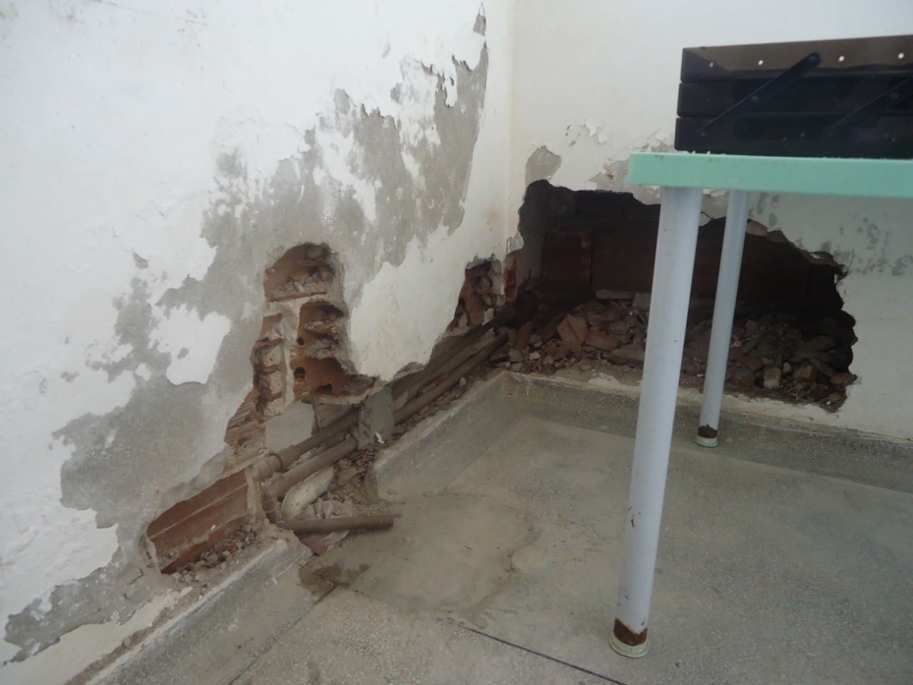 A sala do citológico também com mofo intenso, buracos na parede, sanitário com vaso e lavatório sem funcionar. Por estes motivos, a unidade está há seis meses sem realizar coleta de material para citologia vaginal. No momento da vistoria, a sala de coleta estava alagada por vazamento no teto, junto às instalações elétricas. A sala de curativos estava com infiltração, mofo e sem energia. As salas de enfermagem apresentam problemas semelhantes aos consultórios médicos, sendo que uma delas oferece risco de choque elétrico nas paredes.