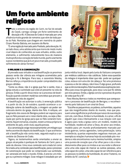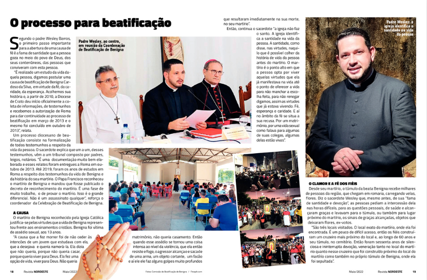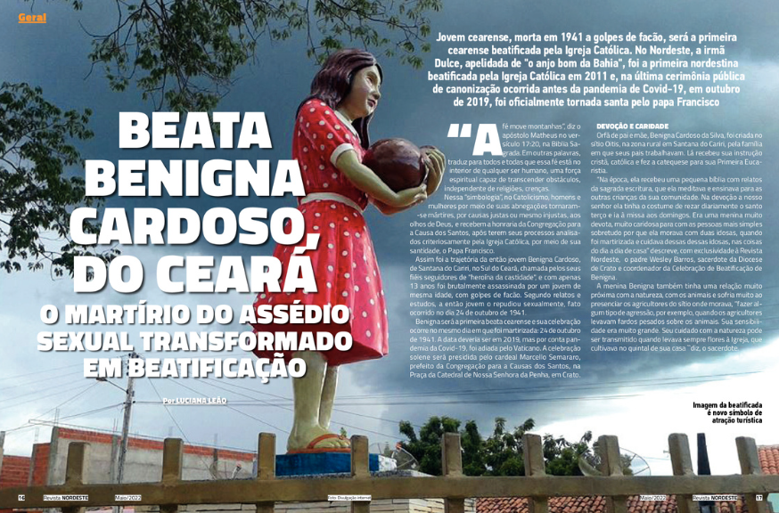 A edição de nº 184 da Revista NORDESTE apresenta como matéria de capa reportagem especial sobre o processo de beatificação da jovem Benigna Cardoso da Silva, natural do Ceará, que foi autorizada pelo Vaticano.