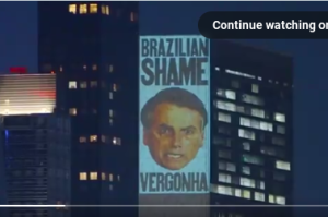 O ocupante do Palácio do Planalto foi alvo de protestos na cidade. Uma mega-projeção foi feita no prédio que é sede da ONU em Nova York. As imagens tratavam Bolsonaro como “vergonha brasileira”, “desgraça” e “mentiroso”.