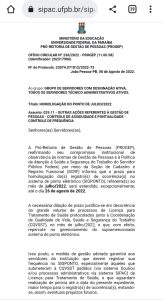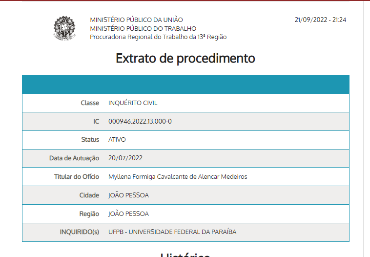 Cópia da Notícia de Fato foi encaminhada ao Sindicato dos Trabalhadores do Ensino Superior da Paraíba (Sintespb), em 30 de agosto, para ciência e adoção de providências dentro da sua esfera de atuação.