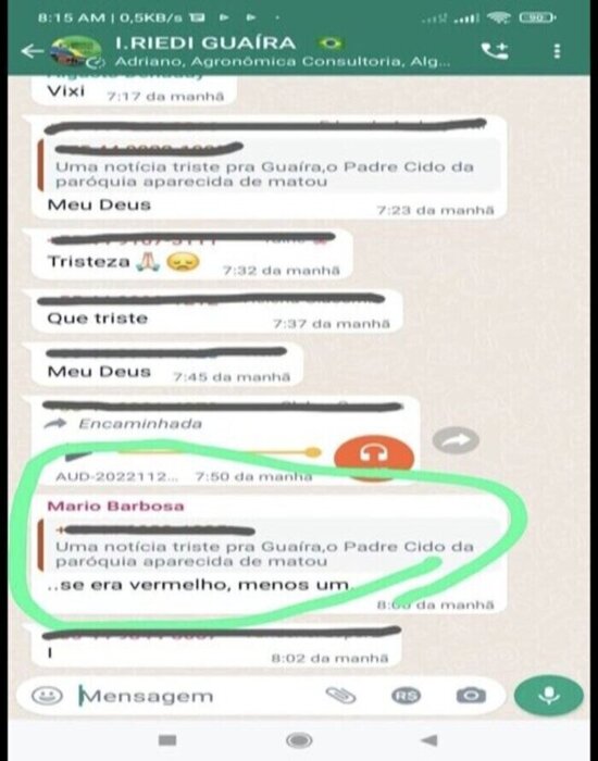 Num grupo de WhatsApp de moradores a que o DCM teve acesso, um homem que pediu para não ter a identidade revelada escreveu o seguinte: “Somos 35 mil habitantes, e a cidade é praticamente 95% bolsonarista. Vivemos reclusos, não postamos nada, não podemos ir na avenida comemorar a vitória do presidente, eles ficaram em seus caminhões fazendo rondas armados pra intimidar qualquer comemoração. Ele foi achado no pátio da igreja, como se alguém tivesse chamado e ele foi atender. Acho que essa história de suicídio é pra mascarar um homicídio”.