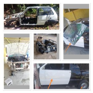 Em diligências complementares, os investigadores foram até uma mata apontada pelo alvo, local onde encontraram um veículo Fiat Uno, cor branca, que tinha sido furtado recentemente, todo desmontado.