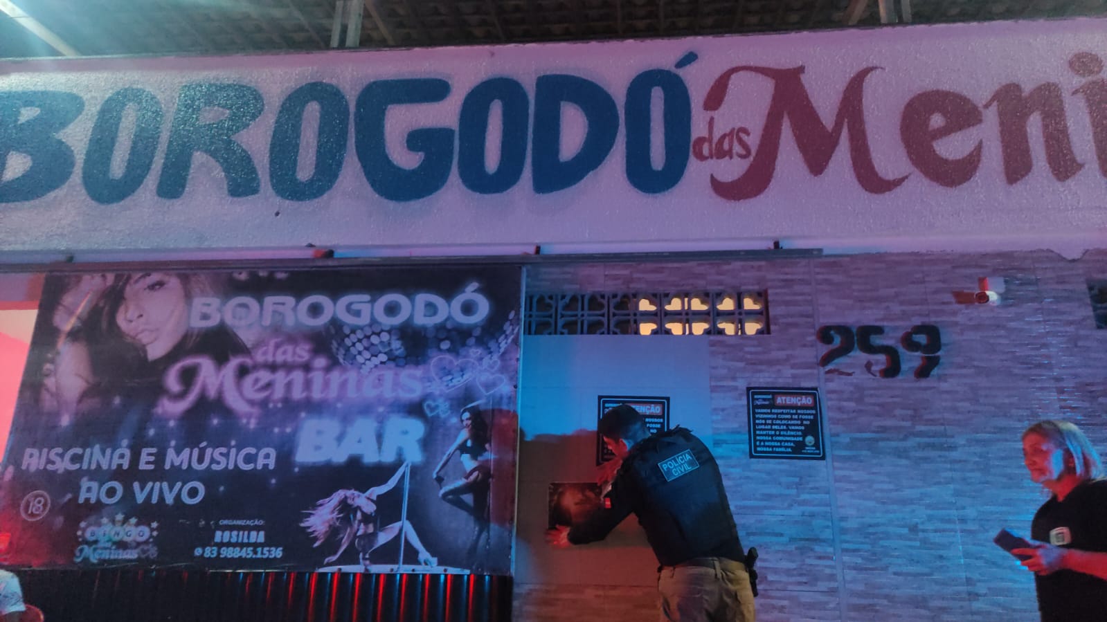 Durante as abordagens foi confirmada a veracidade de uma denúncia através do número 197 da Polícia Civil, de que um bar no bairro Tibiri, em Santa Rita, era ponto de venda de drogas, e exploração sexual, inclusive de menores.