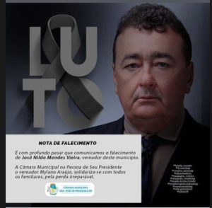 “É com profundo pesar que comunicamos o falecimento do vereador José Mendes Vieira, vereador deste município. A Câmara Municipal na pessoa de seu presidente, o vereador Mylano Araújo, solidariza-se com todos os familiares, pela perda irreparável”, diz a publicação.