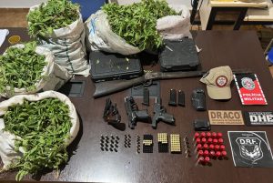 Uma ação das forças de segurança realizada na sexta-feira, na Paraíba, resultou na apreensão de aproximadamente 200 mil pés de maconha. Uma espingarda, duas pistolas e um revólver também foram apreendidos. Duas pessoas foram presas em flagrante.
