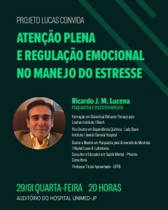 O Psiquiatra Ricardo Lucena inicia nesta quarta-feira (29) uma série de palestras que serão ministradas através do Projeto Lucas. Com foco em médicos e estudantes de medicina, o evento ‘Atenção Plena e Regulação Emocional no Manejo do Estresse’ é gratuito e não é necessário fazer inscrição, os interessados apenas precisam ir ao Auditório da Unimed-JP às 20h.