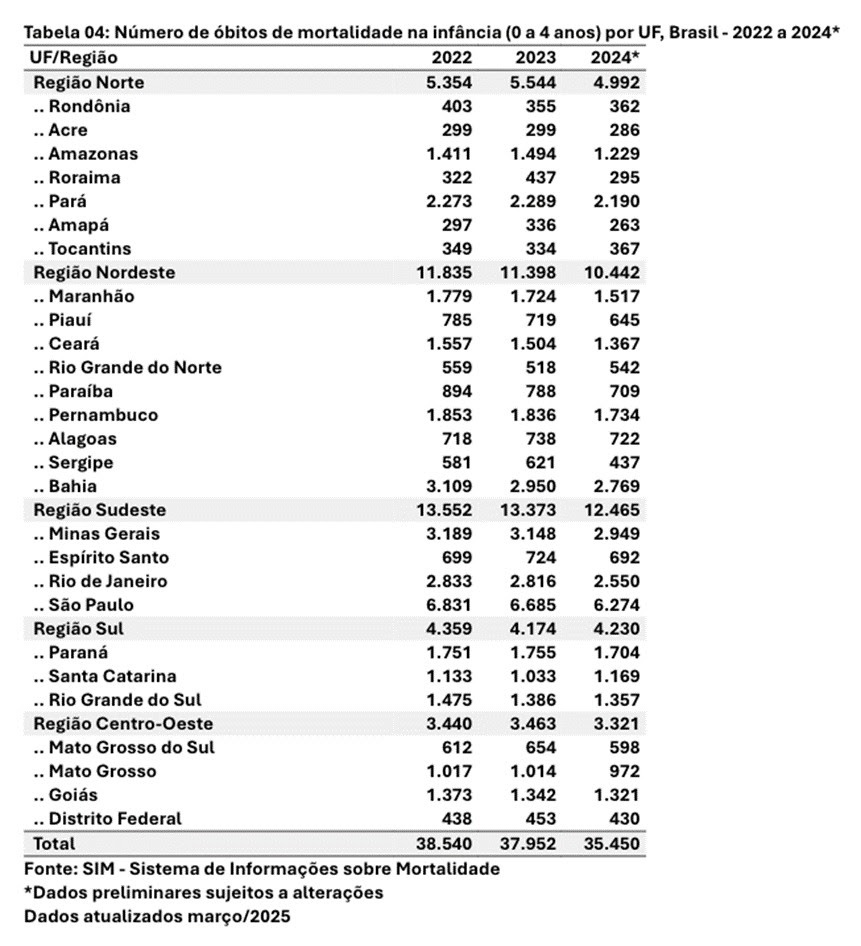 O recuo acompanha a redução observada em outras partes do país. No entanto, o desempenho paraibano supera a média nacional, que registrou uma queda de 8,02% nas mortes infantis entre 2022 e 2024. No cenário regional, a Paraíba representa 6,8% dos óbitos do Nordeste em 2024, percentual menor do que os 7,6% registrados em 2022.