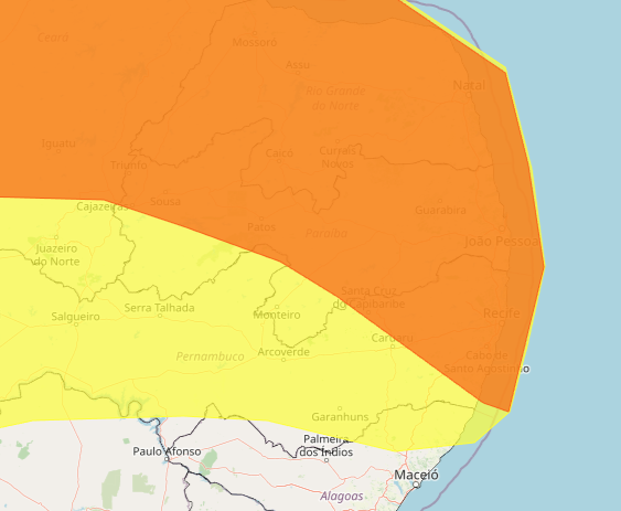O alerta do Inmet classifica a situação como de perigo, com previsão de chuvas entre 30 e 60 mm por hora ou até 100 mm por dia, além de ventos que podem chegar a 100 km/h. Há risco de alagamentos, descargas elétricas, queda de galhos e interrupção no fornecimento de energia.